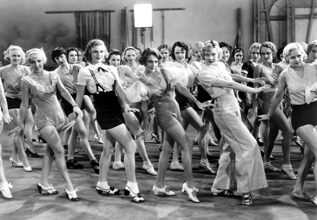 However, it wasn’t only the choreography that made Berkeley’s dance numbers exciting. His use of the camera was just as inventive and daring, with its diagonal angles, incredible traveling shots, and impeccable rhythmic cutting. Berkeley invented a monorail to give the cameras mobility and devised his shots from directly above the action, which became known as the “Berkeley top shot.” In his pursuit of the right perspective for his complex shots, Berkeley drilled holes through stage floors and bored through the ceilings of Warner’s sound stage, causing an angry executive to exclaim: “Jesus, now Berkeley’s going through the roof!”