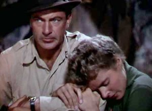 The film presents Hemingway’s notion of masculine adventurism, conveying Jordan’s single-minded commitment to the task of blowing up a strategic bridge in a mountain pass. Yet, artistically, “For Whom the Bell Tolls” is so diffuse, so tedious in pace, and replete with close-ups (of Cooper and Bergman’s tearful farewell), that all we remember of that picture is the romance and the stars.