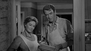 Midway through the film, there’s crucial scene, set in the kitchen, in which the three men, Wayne, Stewart, and Marvin, representing different styles of masculinity, argue over a huge steak (yes, size matters), an iconic American symbol.